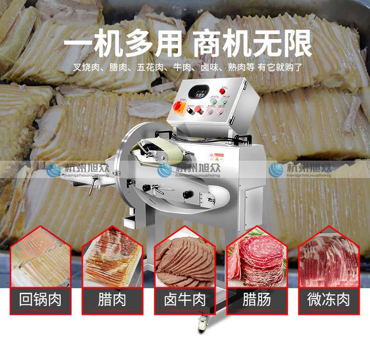 l 特制法國進口刀片,鋒利持久,二把刀片切割原理,能將叉燒肉、臘肉、五花肉、牛肉、鹵味、熟肉類以及一些根莖類蘿卜,土豆,黃瓜,蓮藕,辣椒,苦瓜,絲瓜,西葫蘆等切成片形狀;