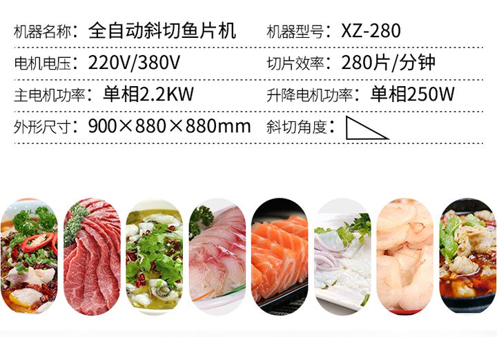 本機外形美觀、操作簡單、效率高、耗電小、清潔保養(yǎng)容易、安全衛(wèi)生、切肉效果好等優(yōu)點,切鮮魚機器其造型美觀、結構緊湊、堅固耐用,切魚片機器價格實惠是賓館、酒家、食堂、肉類加工場等單位所不可缺少的肉類加工機械。