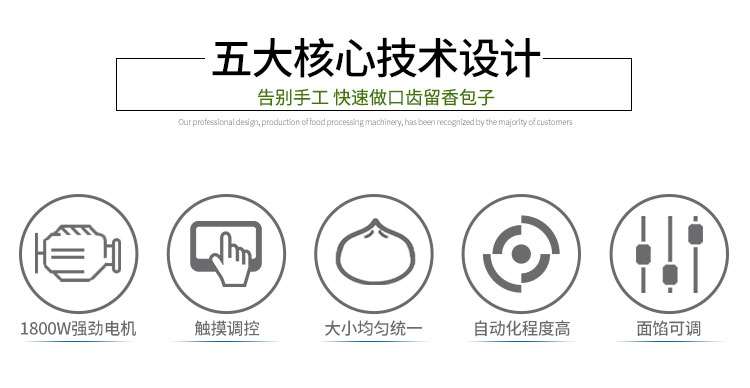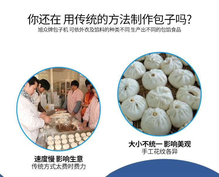 ◆制品多樣化,可生產各種肉包、肉菜包、菜包、小籠包、湯包、水晶包、圓饅頭、奶黃包、豆沙包、叉燒包、南瓜餅等幾十種包餡制品。
