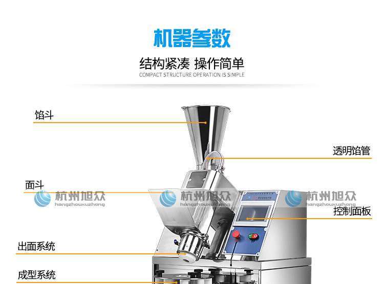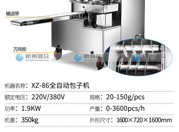 旭眾牌XZ-86全自動包子機體積小重量輕,外殼及接觸食品部分均由不銹鋼制造,外觀精美耐用;采用三變頻無極變速調控,生產性能穩(wěn)定精準。設計先進,結構簡單,操作方便。獨有的三大特色: