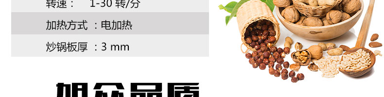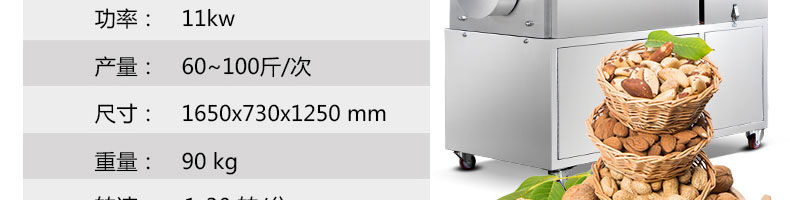 8.適合加工各種干果和堅(jiān)果類,如;板栗、花生、瓜子、松籽、榛子、杏仁、菜籽、咖啡豆、紅棗、芝麻、、核桃、各種豆類、麥類、米類等。適用于在食品加工廠、農(nóng)貿(mào)市場(chǎng)、食品專賣店、連鎖店等處定點(diǎn)加工和經(jīng)營(yíng),符合生產(chǎn)、創(chuàng)業(yè)致富的需要。