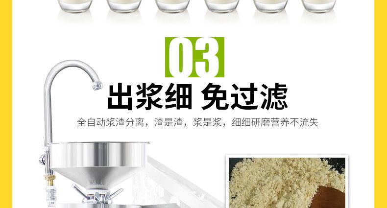 旭眾智能豆腐機(jī)專業(yè)生產(chǎn)數(shù)種豆?jié){制品,穩(wěn)定高效,采用磨漿分離機(jī)和煮漿機(jī),出品率高于其它設(shè)備,擁有自動(dòng)控制系統(tǒng),還增加數(shù)碼溫度控制儀,對煮漿隨時(shí)進(jìn)行監(jiān)控,同時(shí)對不同產(chǎn)品所需溫度自行設(shè)定,當(dāng)煮漿達(dá)到設(shè)定溫度時(shí),具有自動(dòng)提示及報(bào)警功能;整機(jī)采用不銹鋼材質(zhì)制作,質(zhì)量卓越,占地面積小,安裝簡單,工藝先進(jìn),一臺設(shè)備只需一人操作,省時(shí)、省力、省工。
