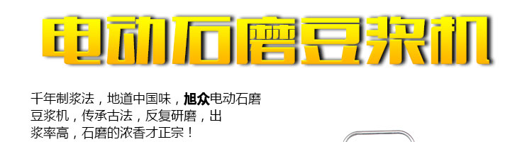 旭眾牌XZ-350電動石磨豆?jié){機(jī)、石磨豆腐機(jī),采用古老石磨的原理,來制作現(xiàn)磨豆?jié){和豆腐。該機(jī)操作簡單,方便快捷,是傳統(tǒng)制作豆腐技術(shù)和現(xiàn)在科技的結(jié)合,實(shí)現(xiàn)豆?jié){制作的新突破,讓人輕松享受到純正順滑的豆?jié){。石磨豆?jié){機(jī)、豆腐機(jī),廣泛適用于飲品店、茶餐廳、面包店、賓館酒樓和單位食堂等使用。