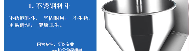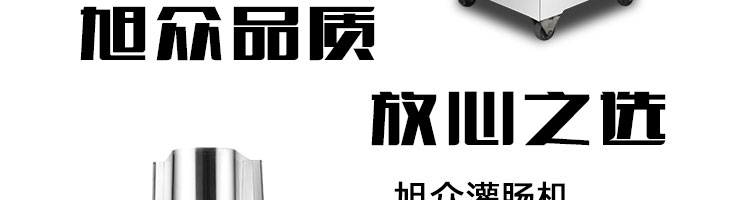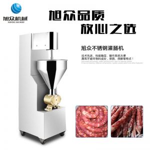 旭眾牌SZ-200灌腸機使用敞開式不銹鋼料斗,適用于連續(xù)添加物料;與灌裝手接觸部件全部采用優(yōu)質(zhì)不銹鋼制作以防生銹;該機自動化程度高,技術(shù)先進(jìn)、性能穩(wěn)定、操作簡便、工作效率高,具有不破壞物料成份,保質(zhì)、保鮮等特點。