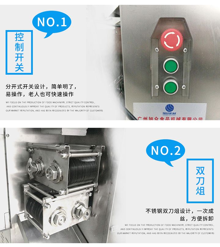 旭眾XZL一次成型切絲機是我廠精心研制出的新產(chǎn)品,該機時尚、簡潔、清洗便捷、操作安全,配有風(fēng)冷馬達,適合連續(xù)作業(yè);高質(zhì)量全不銹鋼機身。適應(yīng)于酒樓、超市、工廠、學(xué)校、賓館、食堂等各種肉類加工企業(yè)和個體用戶使用。?