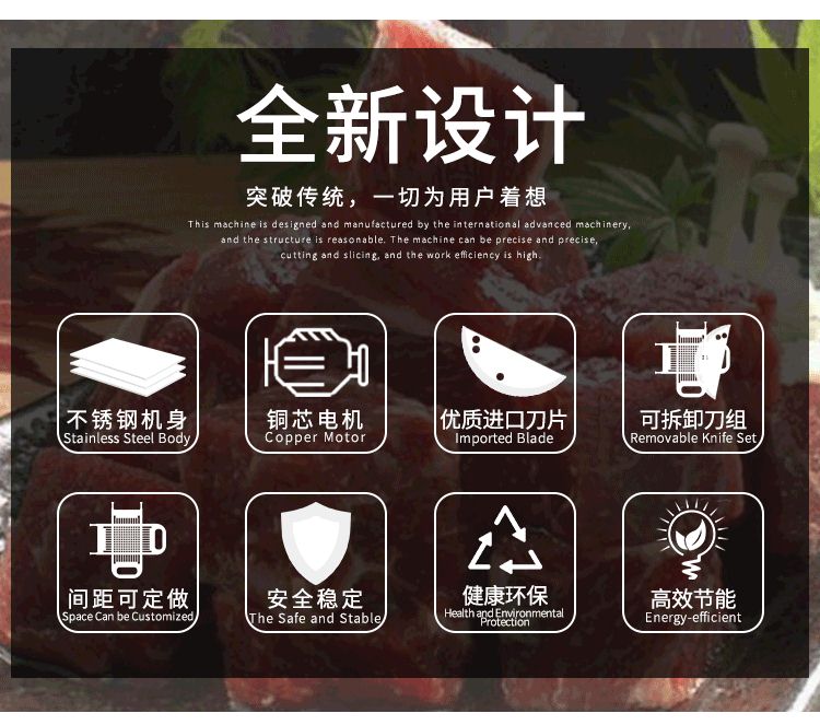 7.肉料可步進進料,可減少在切割過程中對產(chǎn)品的擠壓
