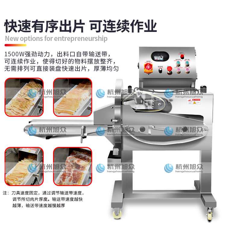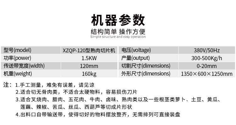 l 特制法國進口刀片,鋒利持久,二把刀片切割原理,能將叉燒肉、臘肉、五花肉、牛肉、鹵味、熟肉類以及一些根莖類蘿卜,土豆,黃瓜,蓮藕,辣椒,苦瓜,絲瓜,西葫蘆等切成片形狀;