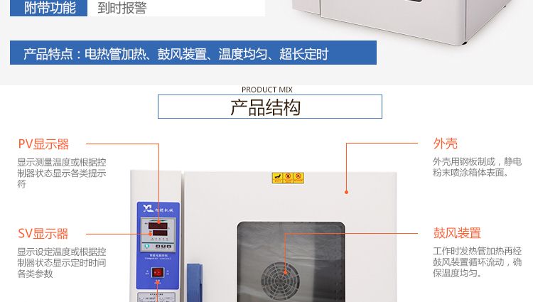 鼓風(fēng)智能數(shù)顯型電熱恒溫干燥箱,廣泛用于工農(nóng)業(yè)生產(chǎn)、科學(xué)研究、醫(yī)療衛(wèi)生等單位對各種糧食、中藥材、動植物、化工材料以及各種工業(yè)產(chǎn)品的烘干烘熟、熱處理和加溫,但不適用于揮發(fā)性、易燃易爆等物品,以免引起燃燒和爆炸。