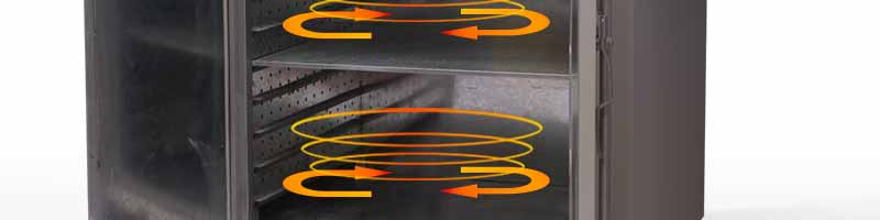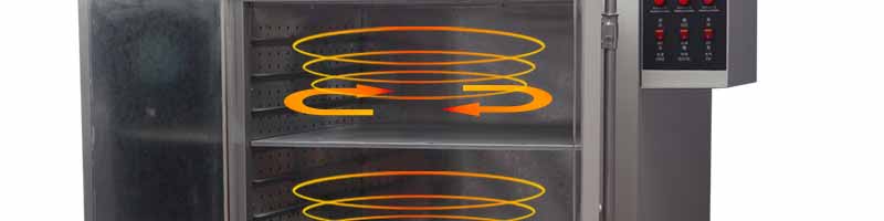 本運風(fēng)箱分水平對流式和上下對流式兩種。工作室較小的采用水平對流式,發(fā)熱部分在上部,工作室較大的則采用上下對流式,發(fā)熱部分在上部。電機安裝在上部或后部,通過帶動風(fēng)輪將熱量流通到工作室,如此循環(huán)。