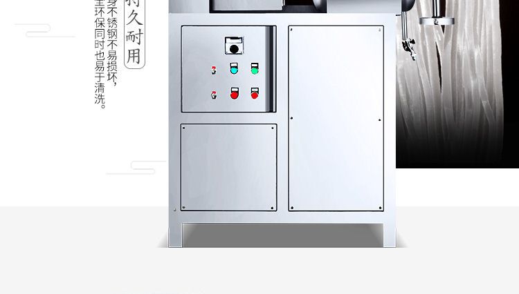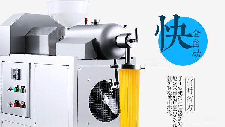 改進型米粉、米線專用機,裝有自動溫空裝置,整個生產(chǎn)過程設備均在恒溫狀態(tài)下運行,自動化程度高,操作簡單,l人即可生產(chǎn)??缮a(chǎn)米粉、米線、桂林米粉、過橋米線、年糕等產(chǎn)品。各種形狀都可生產(chǎn)(圓、扁),加工食品外表光滑,厚薄、寬窄、粗細均勻可調(diào),筋軟適度,有彈性,口感柔軟、味道純正。