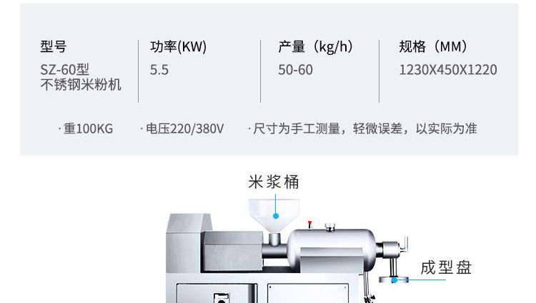 SZ-60不銹鋼米粉機,可生產(chǎn)米粉、米線、桂林米粉、過橋米線、年糕、糍粑等產(chǎn)品。各種形狀都可生產(chǎn)(圓、扁),加工食品外表光滑,厚薄、寬窄、粗細均勻可調(diào),筋軟適度,有彈性,口感柔軟、味道純正。