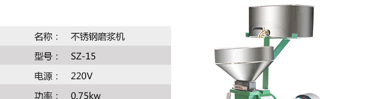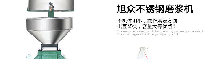 旭眾牌SZ-12/15/20不銹鋼磨漿機結構合理,造型美觀,操作簡便。具有體積小、重量輕、噪音低、省力,性能穩(wěn)定、質量可靠、容易清洗、移動方便等優(yōu)點,適用于豆制品廠、飲食服務業(yè)、食堂、飯店及個體商戶使用。