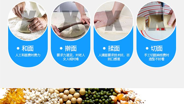 ?生產(chǎn)速度快,效率高,生產(chǎn)流程流暢,各環(huán)節(jié)都輔以電控設(shè)備控制,不會出現(xiàn)堵面,破酥等現(xiàn)象;