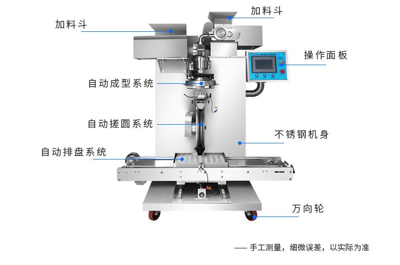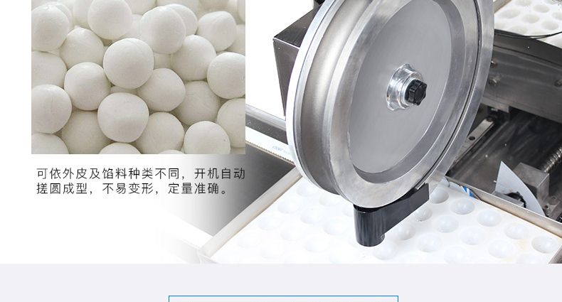 ◆自動(dòng)化程度高,只要將面團(tuán)與餡料放入進(jìn)料口,開機(jī)便可自動(dòng)搓圓成型,制品不易變形,定量準(zhǔn)確;