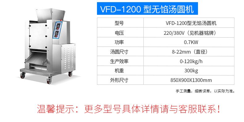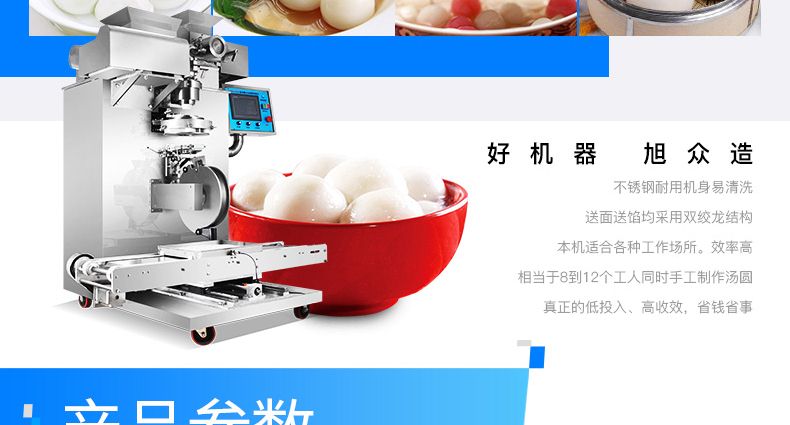本機(jī)工作效率高,相當(dāng)于8-12個(gè)工人同時(shí)手工制作湯圓,真正的低投入、高收效、省錢省工。本機(jī)對(duì)面粉質(zhì)量要求不高,適合各種工作場(chǎng)所。本機(jī)提供免費(fèi)上門培訓(xùn)指導(dǎo)、安裝、調(diào)試、面點(diǎn)工藝傳授。