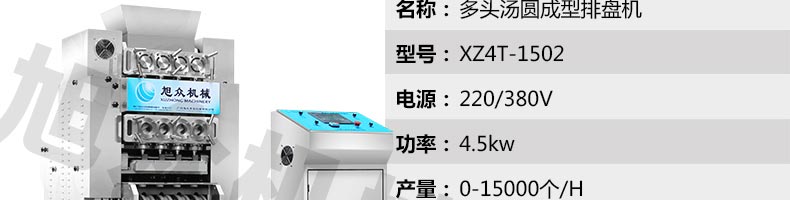 旭眾牌XZ4T-1501型多功能湯圓成型排盤機(jī)是一款只要將面團(tuán)放入進(jìn)料口,開機(jī)便可自動(dòng)搓圓、成型的設(shè)備,制品不易變形,工作效率高,相當(dāng)于15-20個(gè)工人同時(shí)手工制作湯圓,并可自動(dòng)排盤,真正的低投入、高收效、省錢省工。