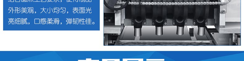◆采用圓盤擠壓搓圓技術(shù),結(jié)合面點(diǎn)工藝要求,使得制品外形美觀,大小均勻,表面光亮細(xì)膩、口感柔滑,彈韌性佳;