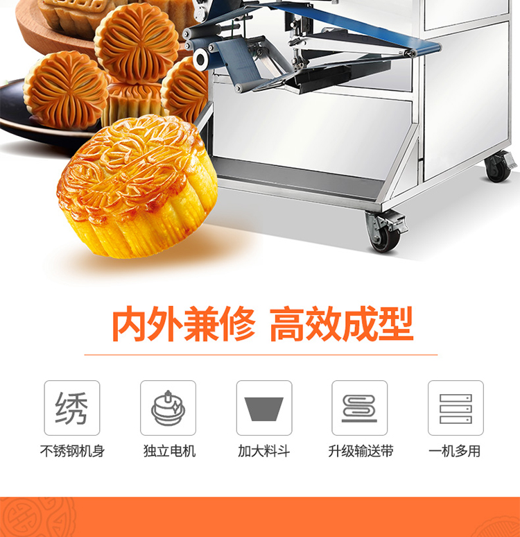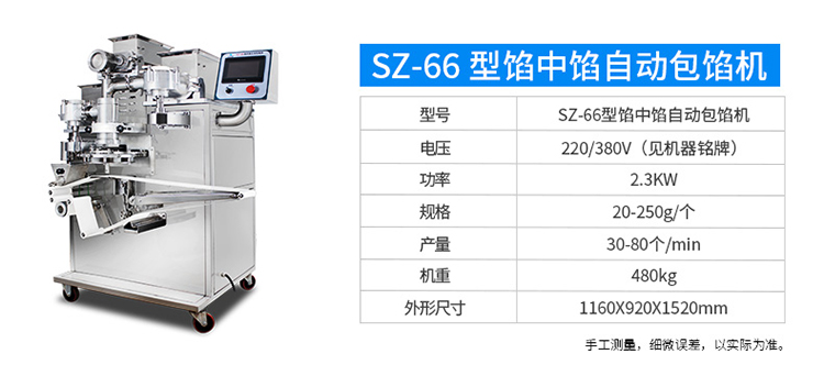 2.餡管更短,管內(nèi)存料少,減小出餡壓力,有效保護(hù)餡料顆粒,使餡料更松散、產(chǎn)品重量、皮餡比例更加穩(wěn)定,適用多種餡料;